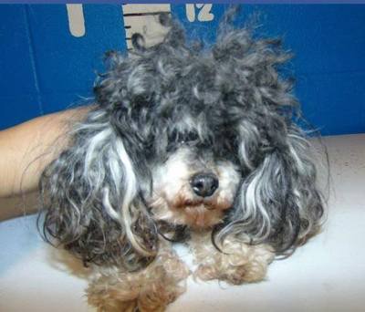 These are pictures of Pebbles upon intake & then after her first grooming.