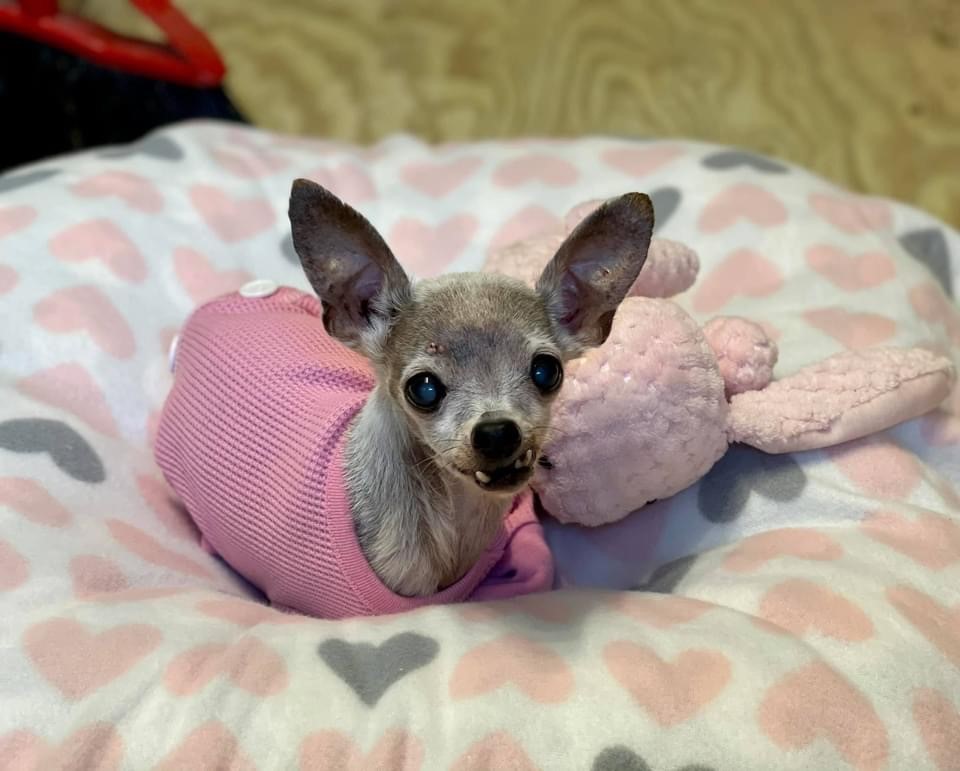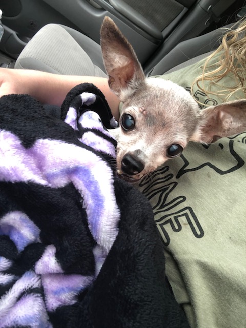 Welcome to our sanctuary…we’ve named her Itsy Bitsy. She’s 15 years old and 3#. For whatever reason she was banished to outdoor living!!!!!! Owners did not even tell us her name.
